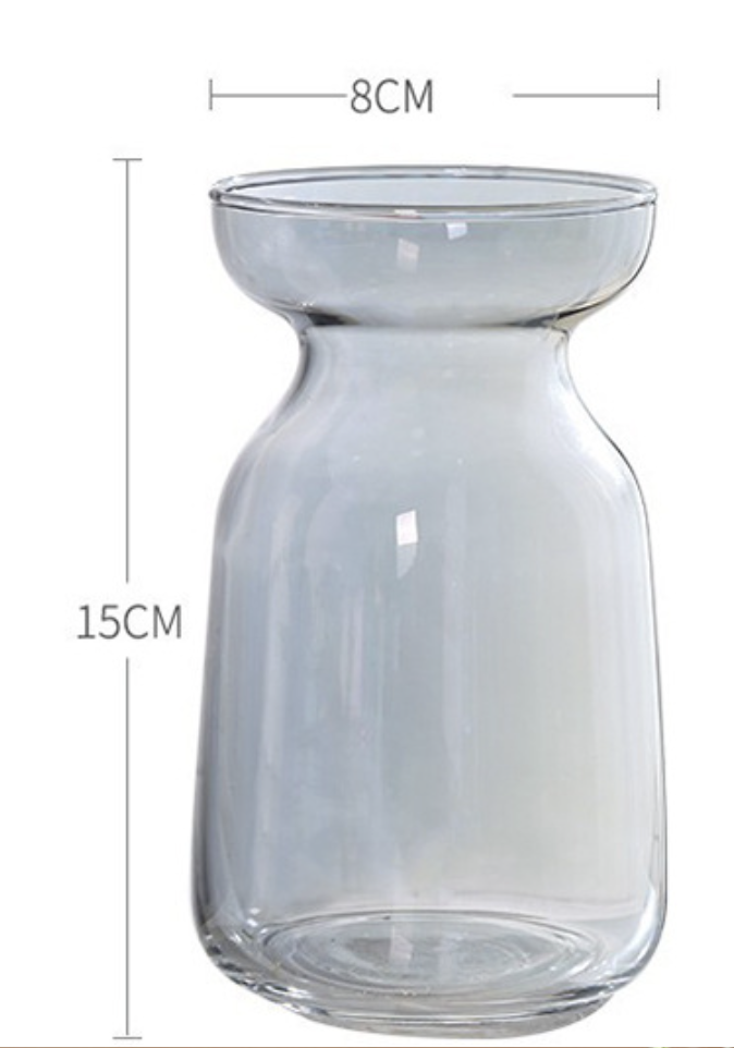 심플한 모양의 유리 꽃병입니다.