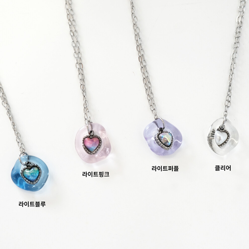 하트 유리 목걸이 체인과 하트 팬던트는 써지컬 스틸로 제작되어 나갑니다.