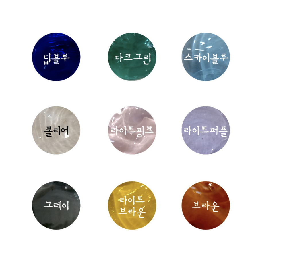 기본 투명(Clear) 컬러 외에도, 깊은 바다를 닮은 네이비나 싱그러운 그린 등 다양한 빛깔로 제작이 가능합니다.